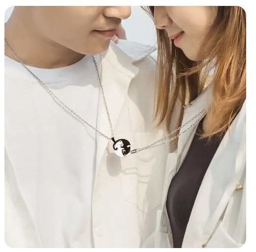 Dos collares con dije de corazón y dibujo de Stich,