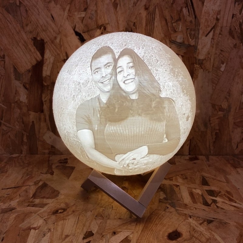 Lampara esférica con fondo lunar, personalizable con fotografía y texto